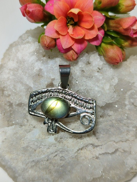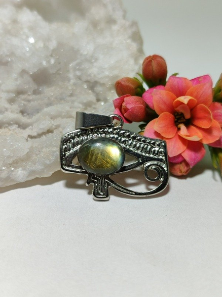 Dije ojo de Horus con piedra labradorita pulida de Madagascar