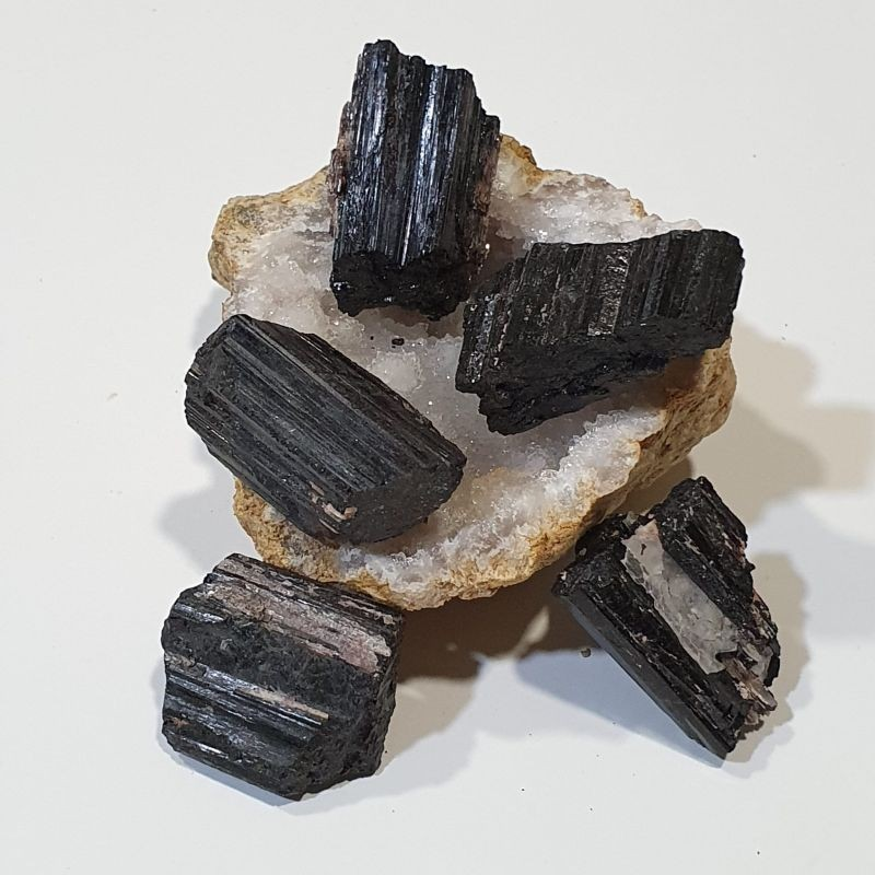 Turmalina negra en bruto en piezas de tamaños surtidos.