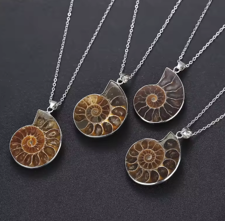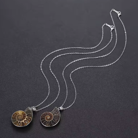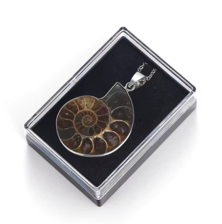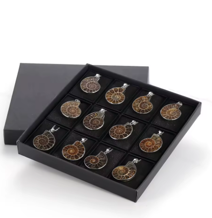 Dijes de ammonite naturales. En cajita con cadena. Importados India.