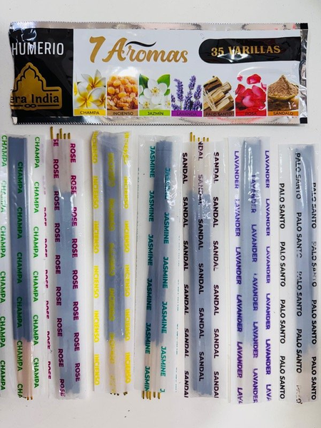 El blister incluye 6 bolsas con 35 sahumerios cada bolsa. Sumergite en una experiencia aromática única con los sahumerios Tera India, un pack especial que combina 7 fragancias tradicionales en una sola presentación.