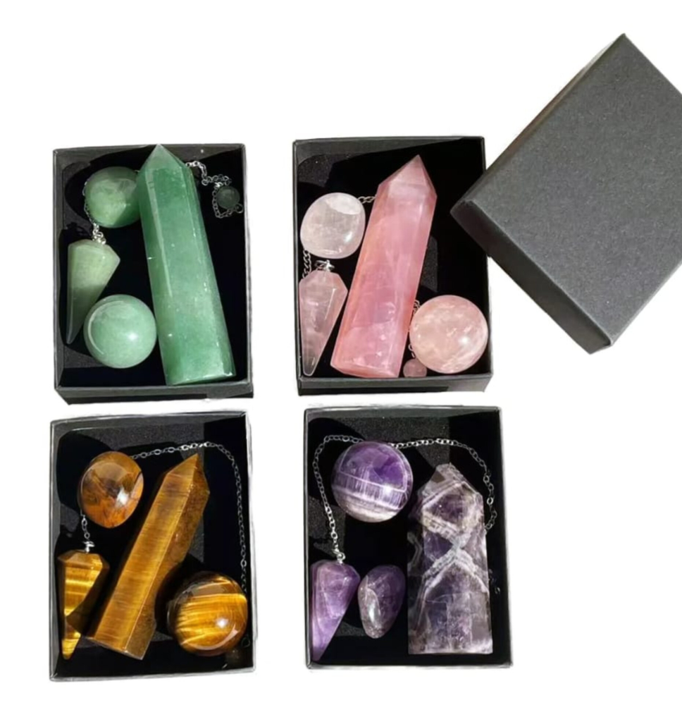 Set integral de gemoterapia: obelisco, péndulo, gema rolada y esfera